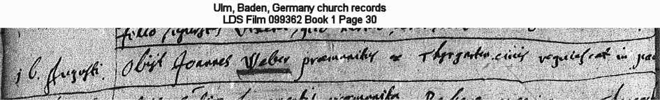 Ulm, Baden, Germany church records LDS Film 099362 Book 1 Page 30