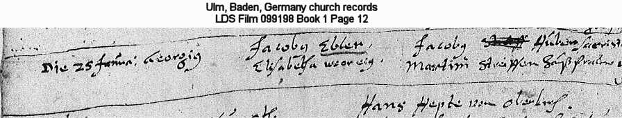 Ulm, Baden, Germany church records LDS Film 099198 Book 1 Page 12