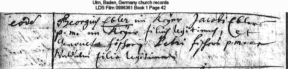 Ulm, Baden, Germany church records LDS Film 0996361 Book 1 Page 42