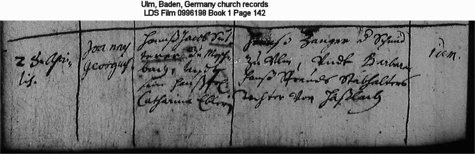 Ulm, Baden, Germany church records LDS Film 0996198 Book 1 Page 142