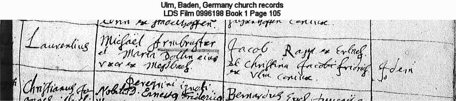 Ulm, Baden, Germany church records LDS Film 0996198 Book 1 Page 105