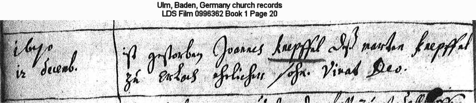 Ulm, Baden, Germany church records LDS Film 0996362 Book 1 Page 20