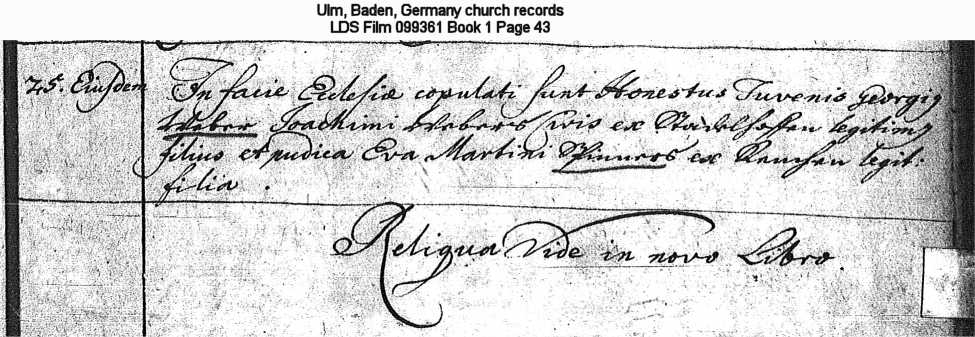 Ulm, Baden, Germany church records LDS Film 099361 Book 1 Page 43
