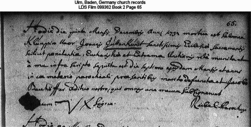 Ulm, Baden, Germany church records LDS Film 099362 Book 2 Page 65