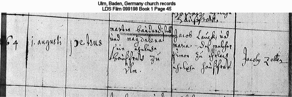 Ulm, Baden, Germany church records LDS Film 099198 Book 1 Page 45