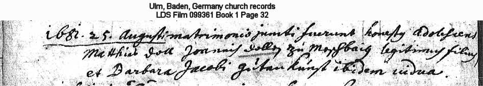 Ulm, Baden, Germany church records LDS Film 099361 Book 1 Page 32