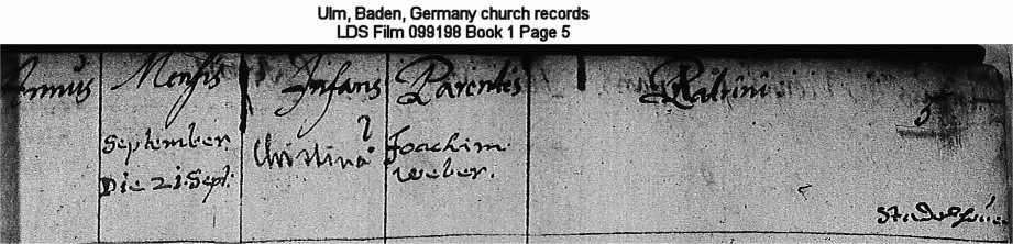 Ulm, Baden, Germany church records LDS Film 099198 Book 1 Page 5