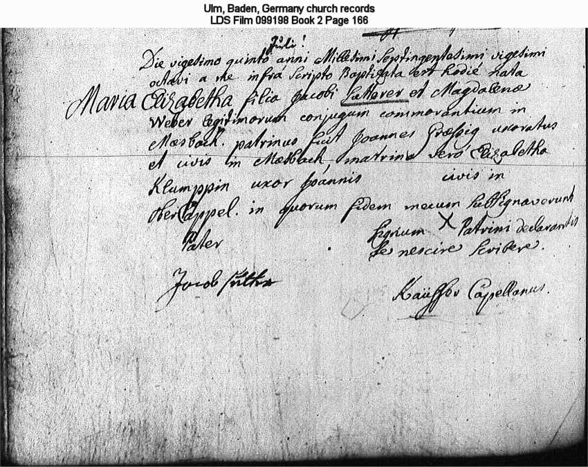 Ulm, Baden, Germany church records LDS Film 099198 Book 2 Page 166