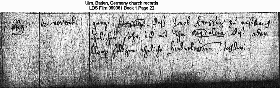Ulm, Baden, Germany church records LDS Film 099361 Book 1 Page 22