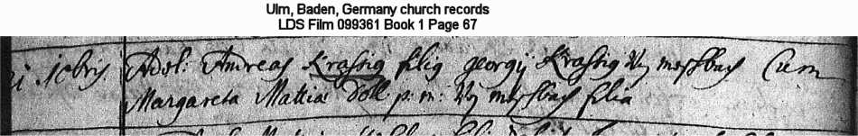 Ulm, Baden, Germany church records LDS Film 099361 Book 1 Page 67