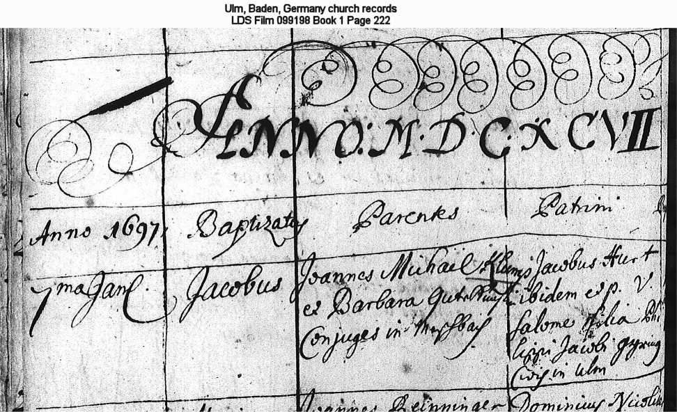 Ulm, Baden, Germany church records LDS Film 099198 Book 1 Page 222