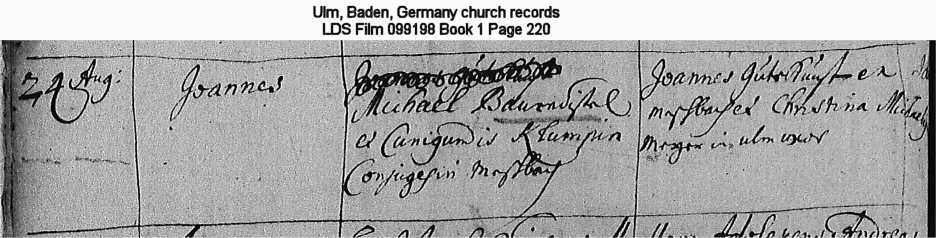Ulm, Baden, Germany church records LDS Film 099198 Book 1 Page 220