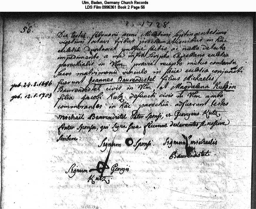 Ulm, Baden, Germany Church Records LDS Film 0996361 Book 2 Page 56