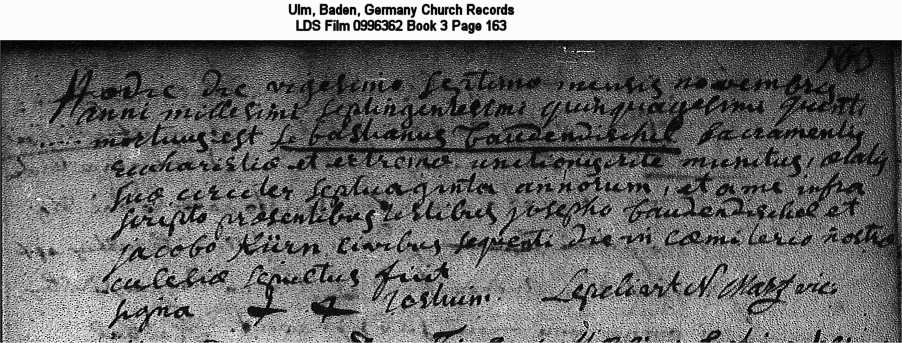 | Death Record Ulm, Baden, Germany Church Records LDS Film 0996362 Book 3 Page 163 |