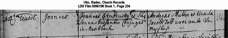 Ulm, Baden, Church Records LDS Film 0996198 Book 1, Page 234