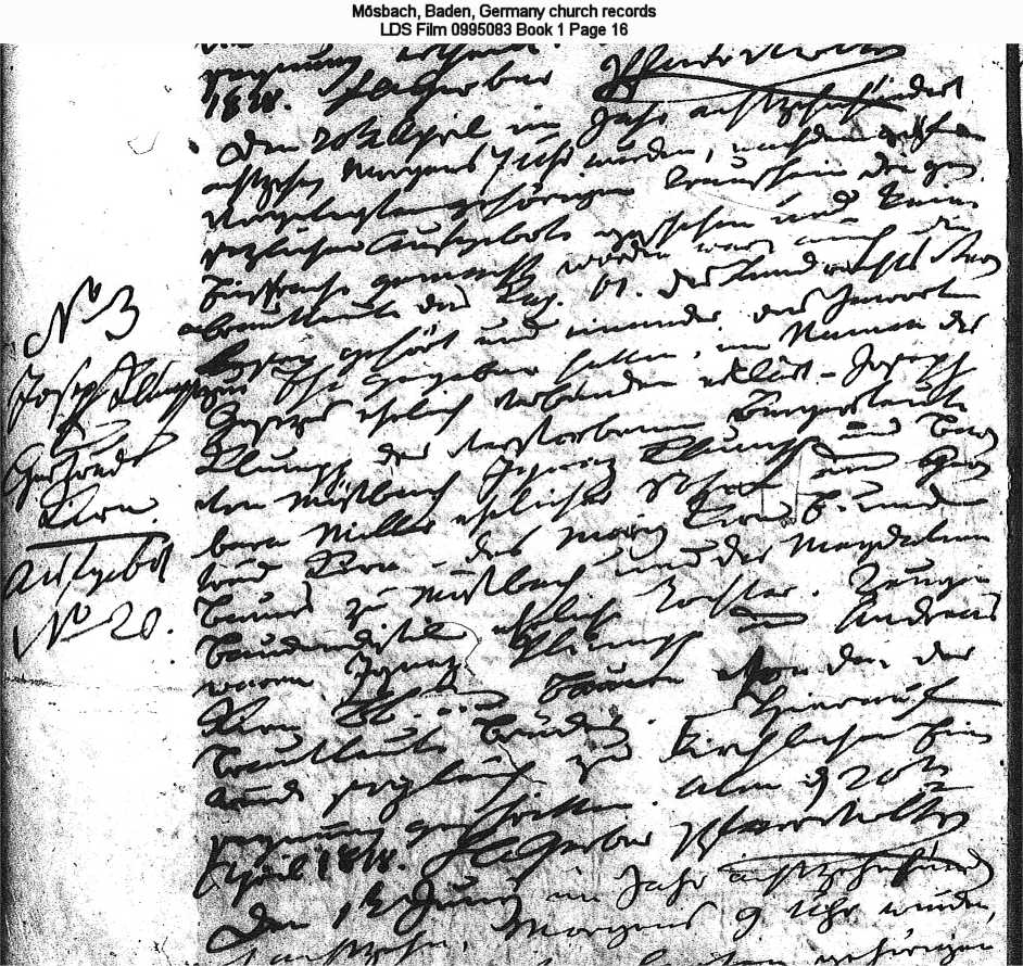 | Marriage Record Mösbach, Baden, Germany church records LDS Film 0995083 Book 1 Page 16 |