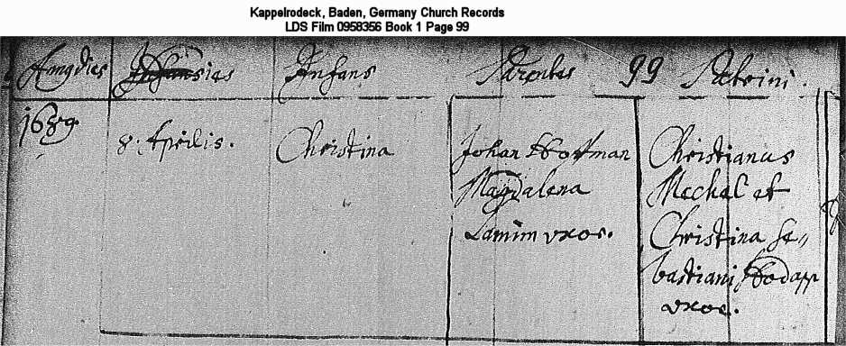 Kappelrodeck, Baden, Germany Church Records LDS Film 0958356 Book 1 Page 99