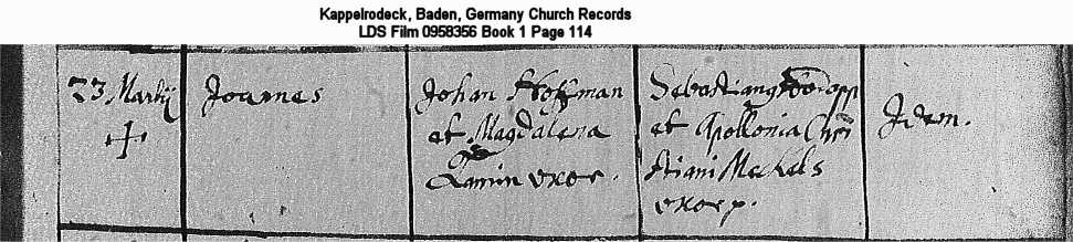 Kappelrodeck, Baden, Germany Church Records LDS Film 0958356 Book 1 Page 114