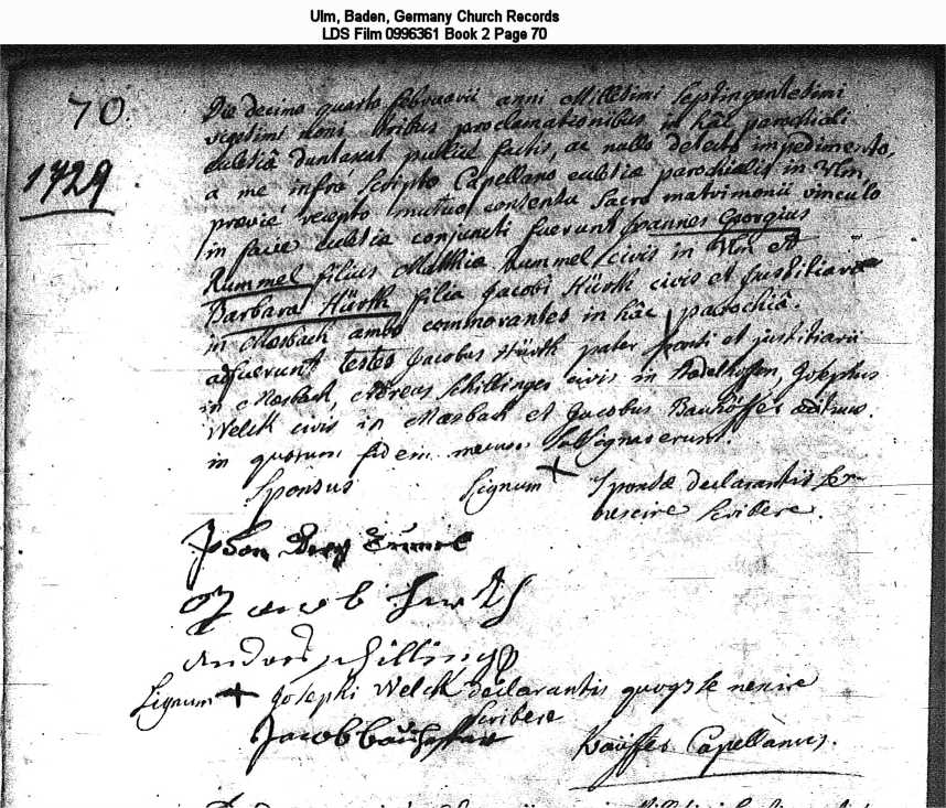 Ulm, Baden, Germany Church Records LDS Film 0996361 Book 2 Page 70