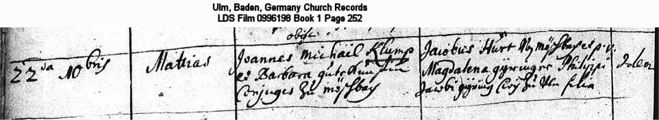 Ulm, Baden, Germany Church Records LDS Film 0996198 Book 1 Page 252
