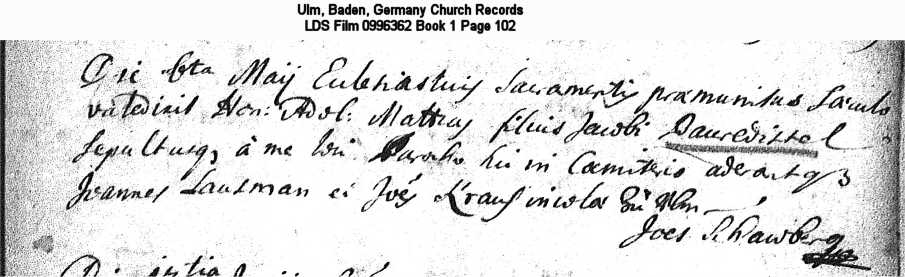 Ulm, Baden, Germany Church Records LDS Film 0996362 Book 1 Page 102