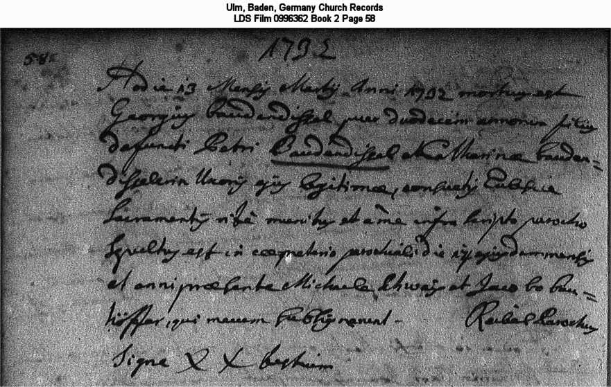 Ulm, Baden, Germany Church Records LDS Film 0996362 Book 2 Page 58