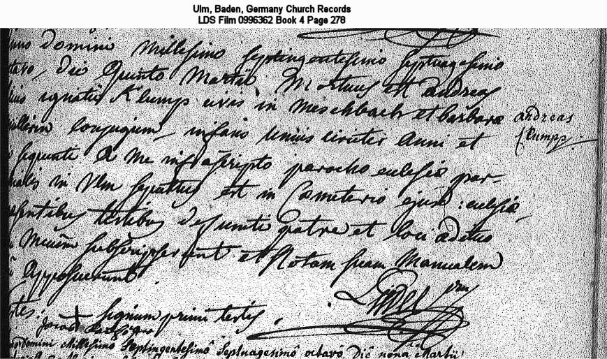 Ulm, Baden, Germany Church Records LDS Film 0996362 Book 4 Page 278