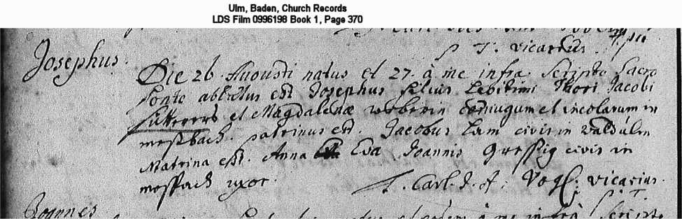 Ulm, Baden, Church Records LDS Film 0996198 Book 1, Page 370