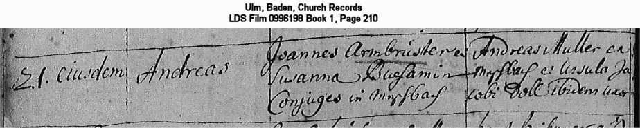 Ulm, Baden, Church Records LDS Film 0996198 Book 1, Page 210