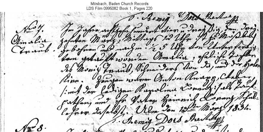 | Birth record - original Mösbach church records - original |