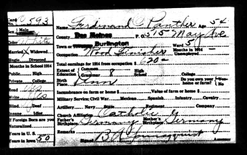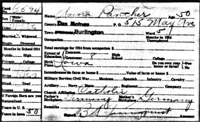 An Anna Panther that shows up in the 1915 Census in Ferdinand C. Panther's household. This might be Emma Panther.