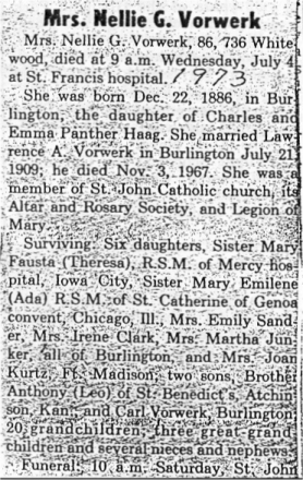 L-R: Amelia Panther, S. Theresa, Nellie Hague Vorwerk, Emma Panther Hague