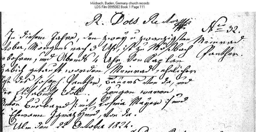 | Marriage Record Mösbach, Baden, Germany church records LDS Film 0995083 Book 1 Page 156 |