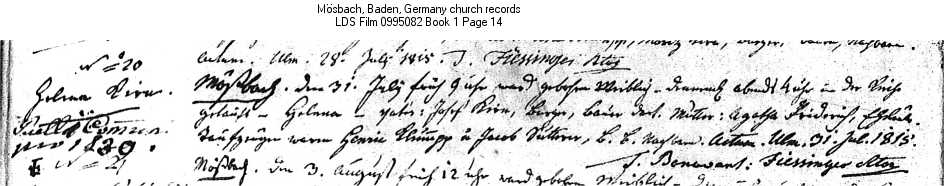 | Birth Record Mösbach, Baden, Germany church records LDS Film 0995082 Book 1 Page 14 |