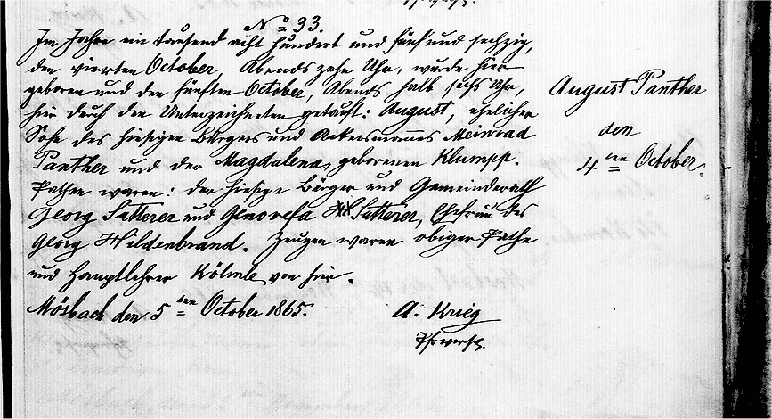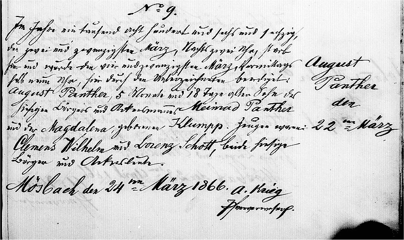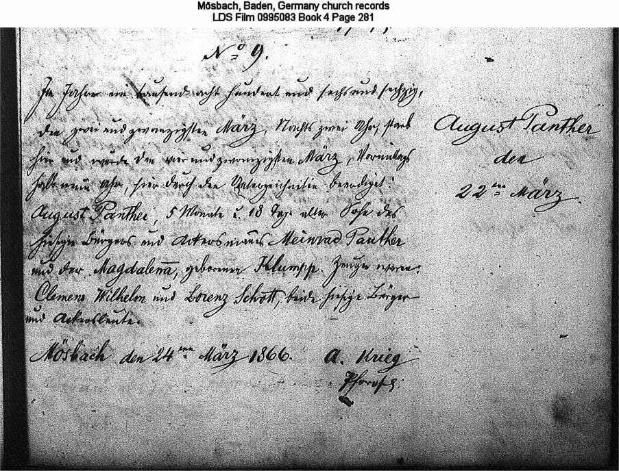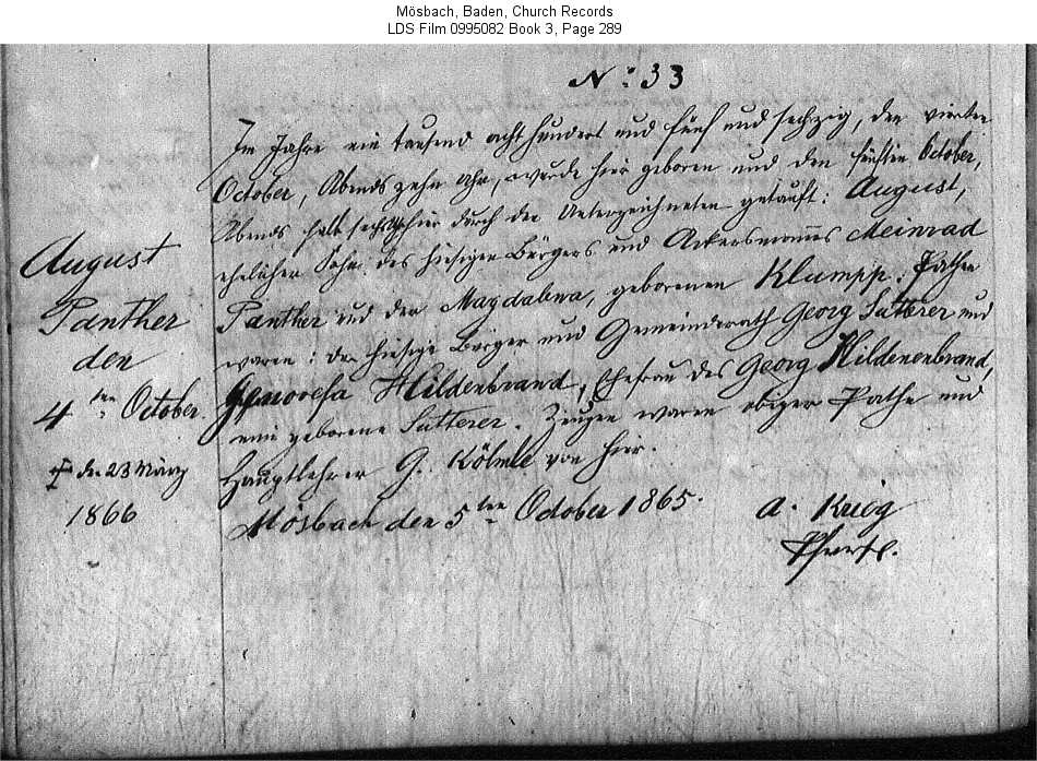 | Birth Record - original Mösbach, Baden, Church Records LDS Film 0995082 Book 3, Page 289 |