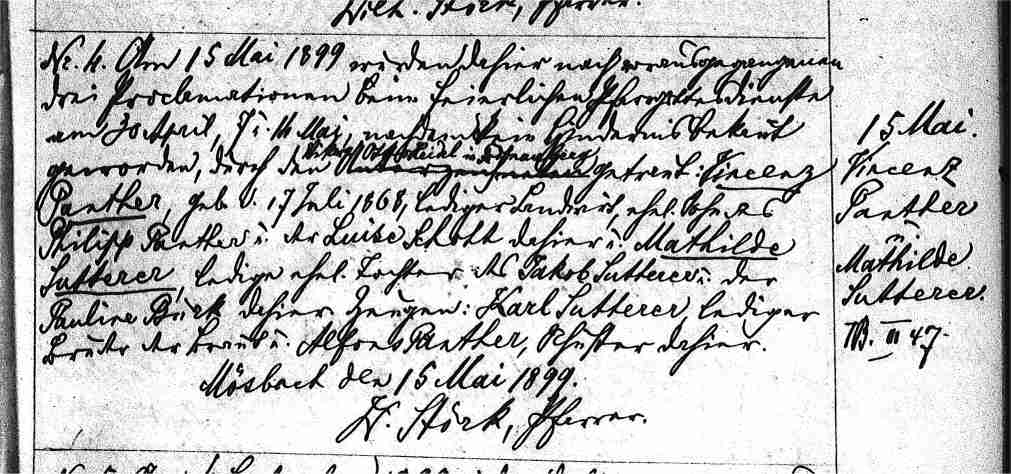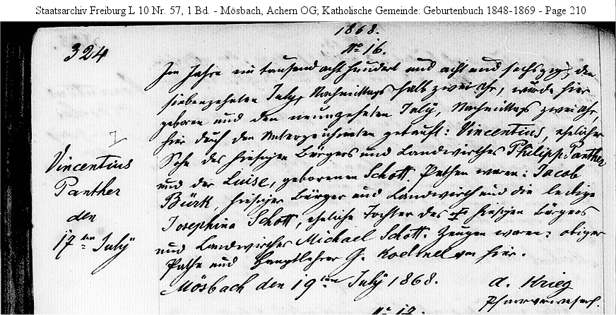 | Birth Record - Original Mösbach, Baden, Church Records LDS Film 0995082 Book 3, Page 324 |