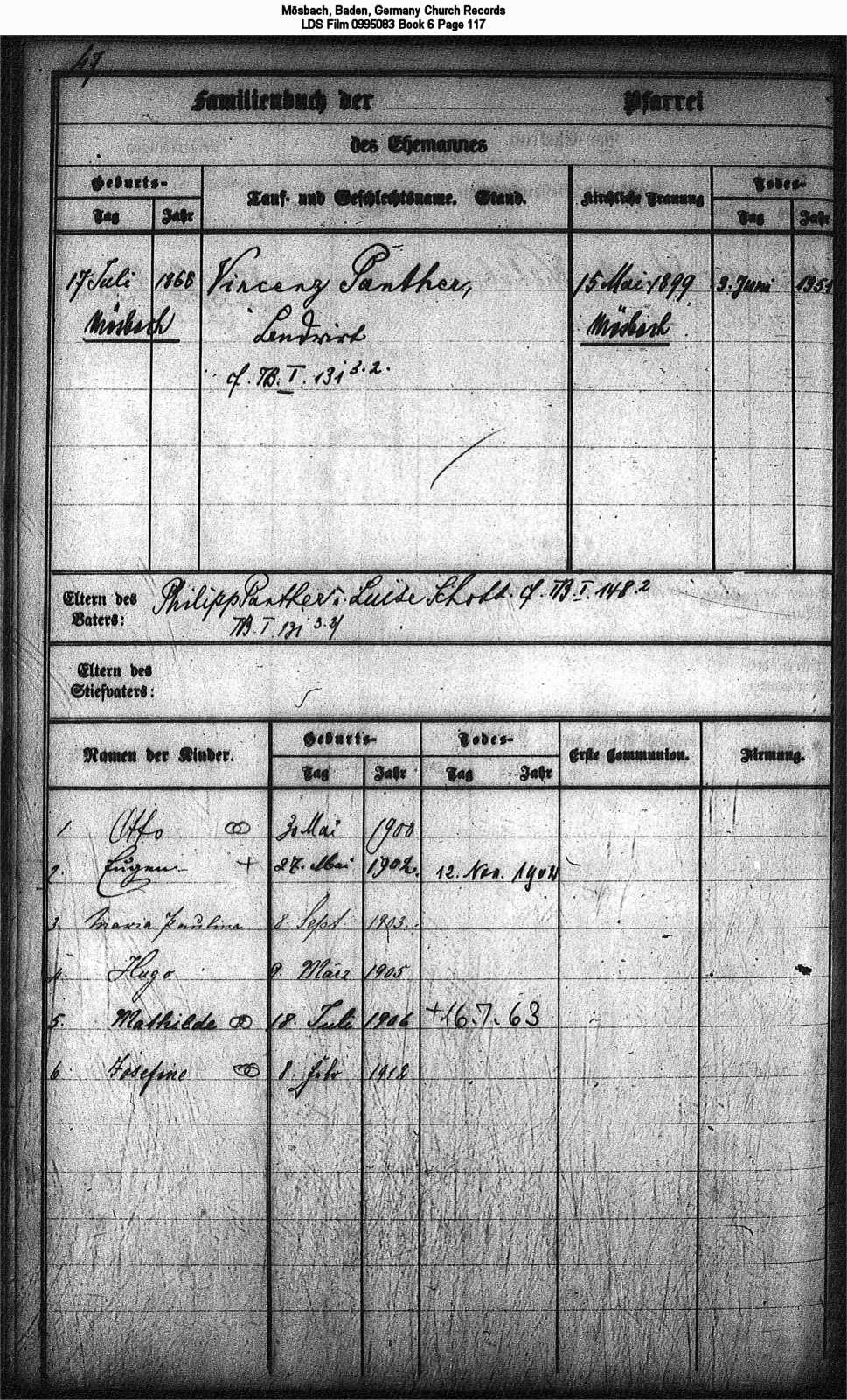 | Church Family Record 2 Page 1 Mösbach, Baden, Germany Church Records LDS Film 0995083 Book 6 Page 117 |