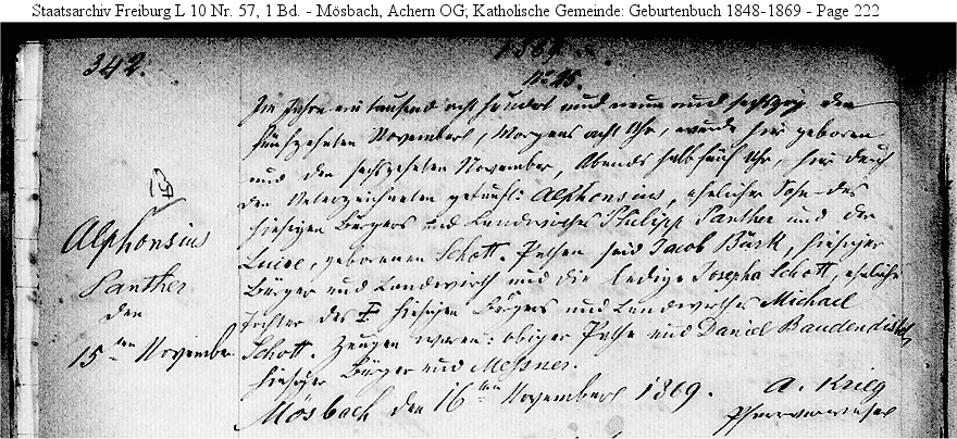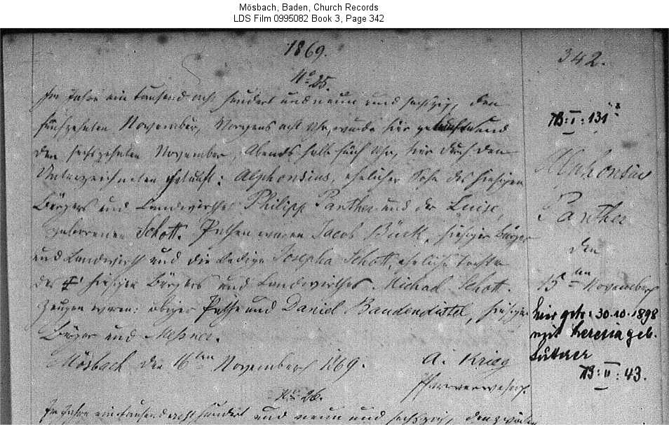 | Birth Record - Original Mösbach, Baden, Church Records LDS Film 0995082 Book 3, Page 342 |