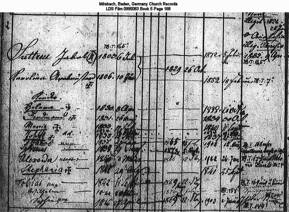 Mösbach, Baden, Germany Church Records LDS Film 0995083 Book 5 Page 168