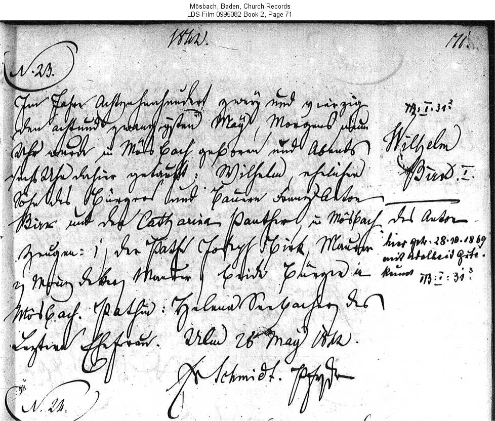 Mösbach, Baden, Church Records LDS Film 0995082 Book 2, Page 71