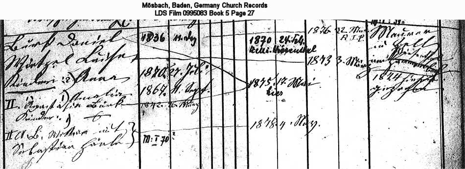 | Church Family Record Mösbach, Baden, Germany Church Records LDS Film 0995083 Book 5 Page 27 |