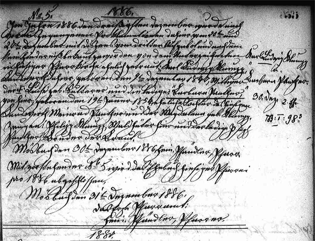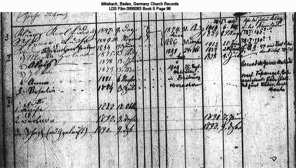 | Church Family Record 2 Mösbach, Baden, Germany Church Records LDS Film 0995083 Book 5 Page 98 |