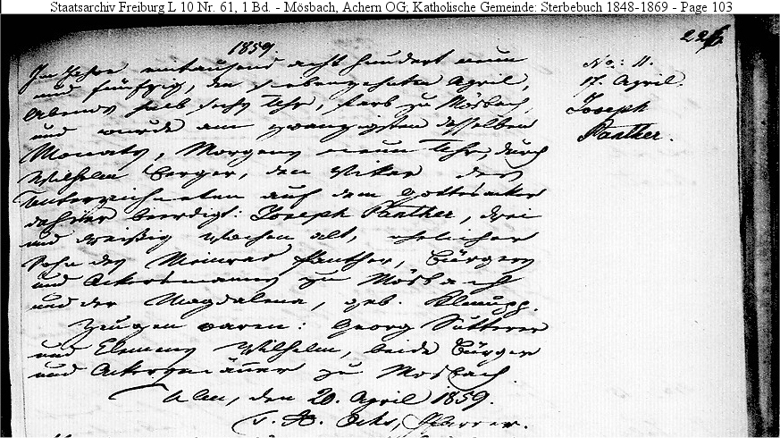 | Death Record - Duplicate Mösbach, Baden, Germany church records duplicate |