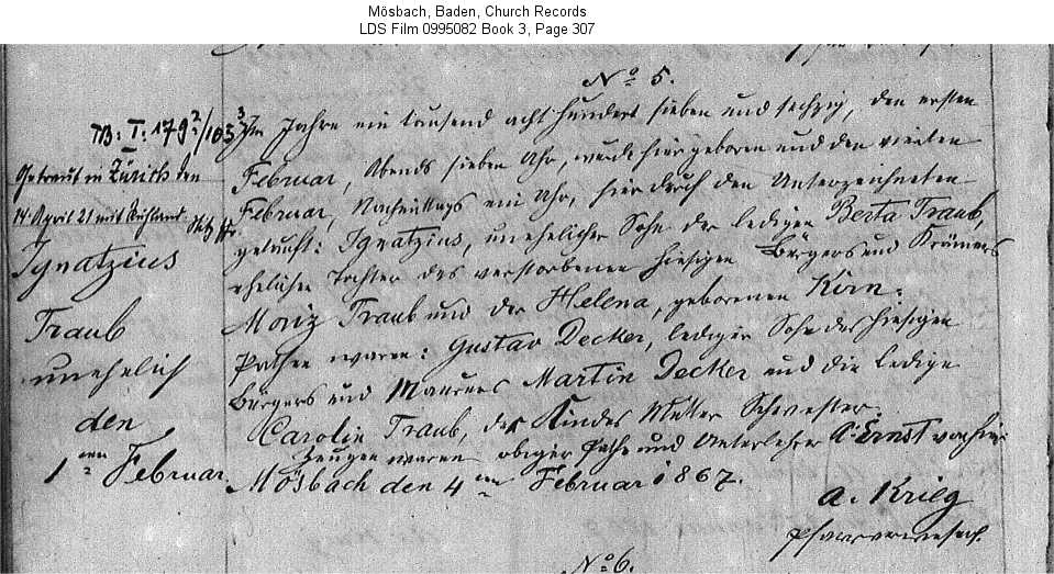 Mösbach, Baden, Church Records LDS Film 0995082 Book 3, Page 307
