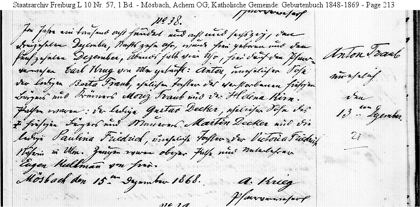 Mösbach, Baden, Germany Church Records LDS Film 0995083 Book 5 Page 179