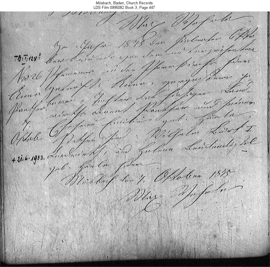 Mösbach, Baden, Church Records LDS Film 0995082 Book 3, Page 447