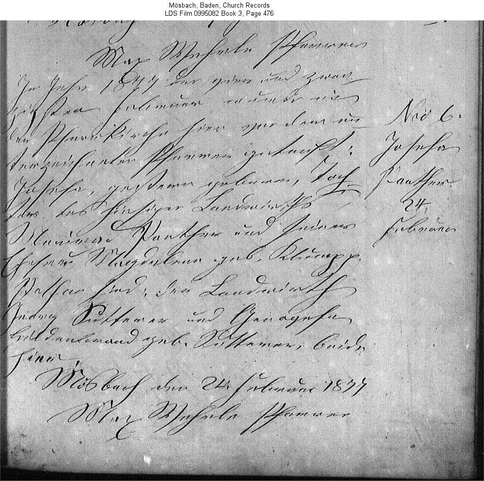 Mösbach, Baden, Church Records LDS Film 0995082 Book 3, Page 476