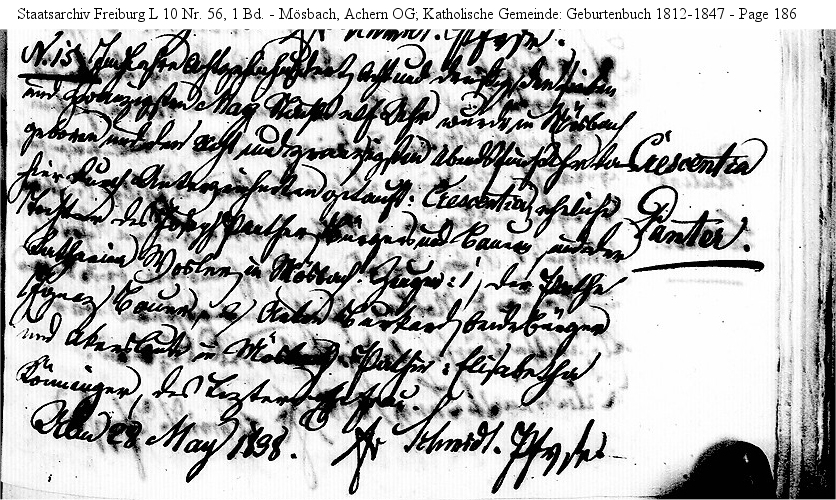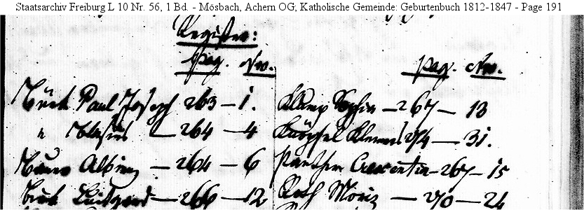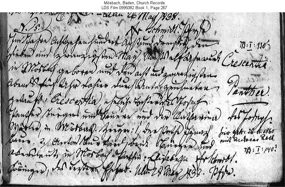 | Birth Record - Original Mösbach, Baden, Church Records LDS Film 0995082 Book 1, Page 267 |