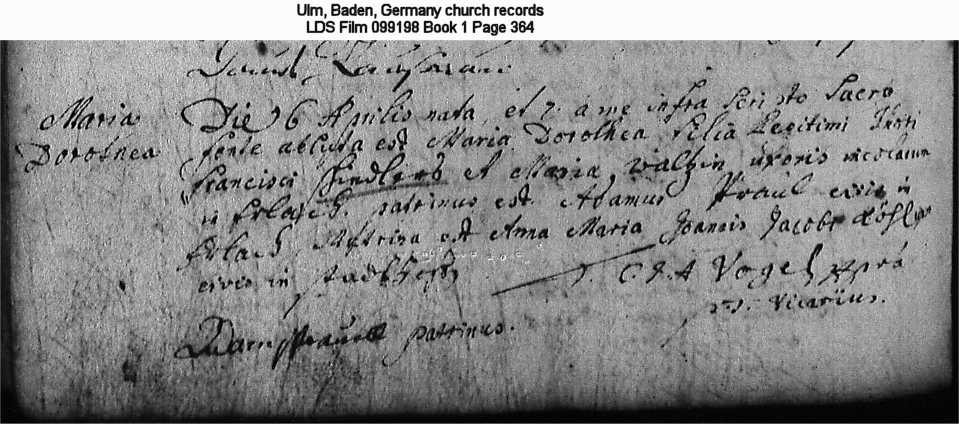 Ulm, Baden, Germany church records LDS Film 099198 Book 1 Page 364
