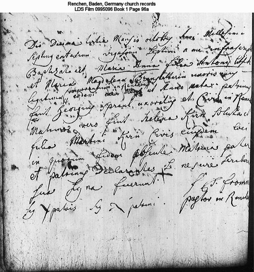 | Birth Record Renchen, Baden, Germany church records LDS Film 0995096 Book 1 Page 96a |